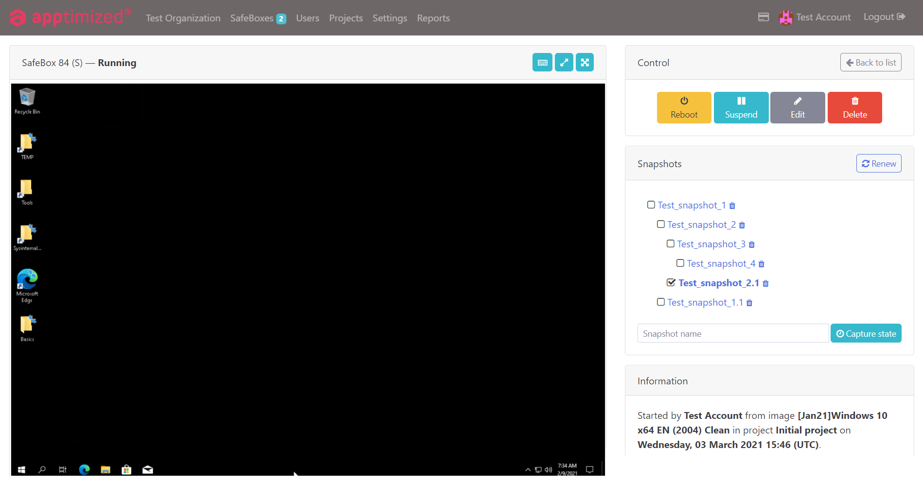 Thanks to the persistence of your SafeBoxes and their personalization and snapshot features, any setup and configuration work is retained for as long as you wish. Any data produced using SafeBox and your installed apps are kept permanently, too. If you want to return to any previous state of the SafeBox – including the very initial “fresh” one – simply revert it to a snapshot.